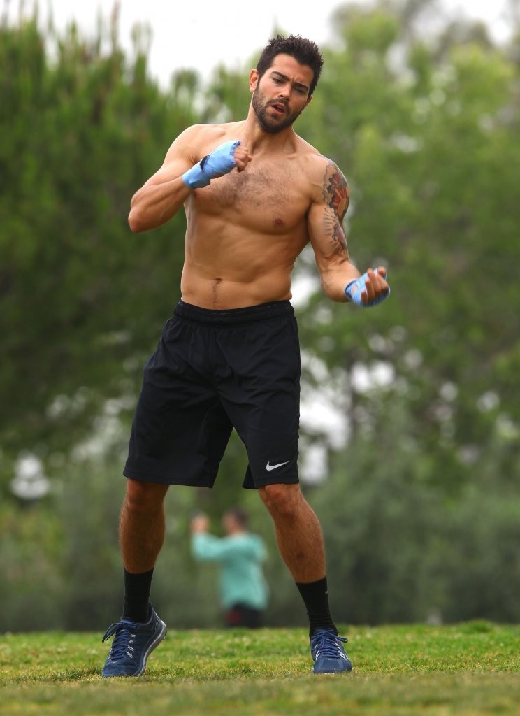 , s'est entrainé hier avec son coach dans un parc d'Hollywood. Short et pompes Nike comme tenue.